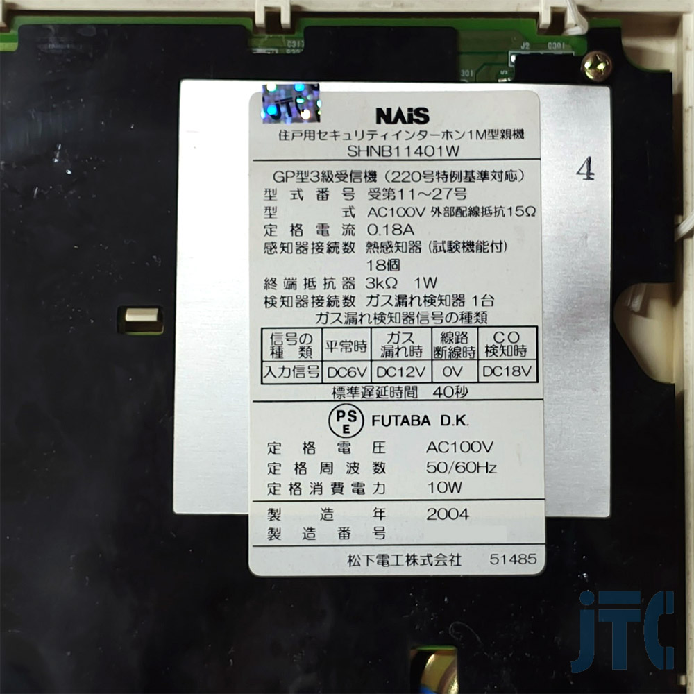 品名紙(機器の底面に貼られたシール等)の表記:SHNB11401W