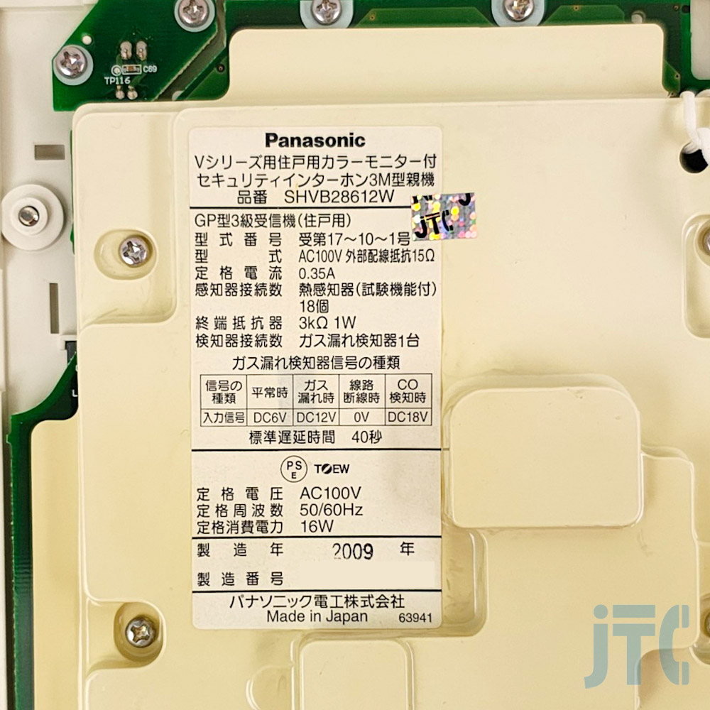 品名紙(機器の底面に貼られたシール等)の表記:SHVB28612W